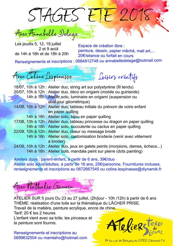 Dates et horaires des stages d’été de l’Atelier Annabelle Delage.