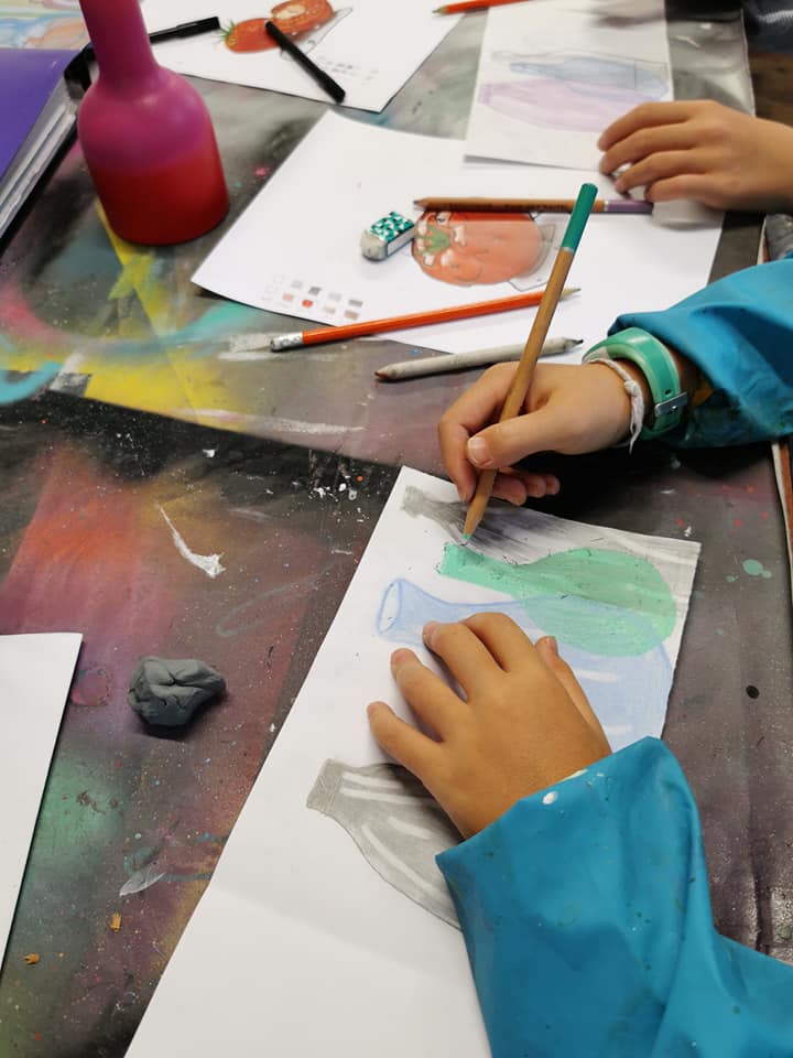 Les cours de dessin peinture enfants avec Coline FilhouetteDiynamiK ont débuté la semaine dernière. Les jeunes artistes ont travaillé les nuances de gris et de couleurs puis ont dessiné des fruits et des vases pour comprendre les volumes et la transparence. Quelles belles réalisations ! ![]()