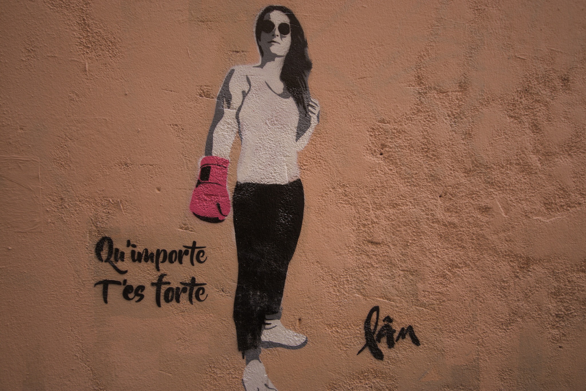 On peut trouver des messages comme celui-ci un peu partout dans la Ville de Clermont-Ferrand, mais aussi de belles collab avec notamment Cecyl dont on peut voir une fresque rue des bohèmes qui est une petite rue dérobée sur la rue Blaise Pascal. Quant à cette boxeuse, on peut la retrouver sur le haut de la rue Savaron, elle est là depuis un moment, mais le message est très parlant, surtout avec un gant de boxe rose, qui peut forcément rappeler #octobrerose !
