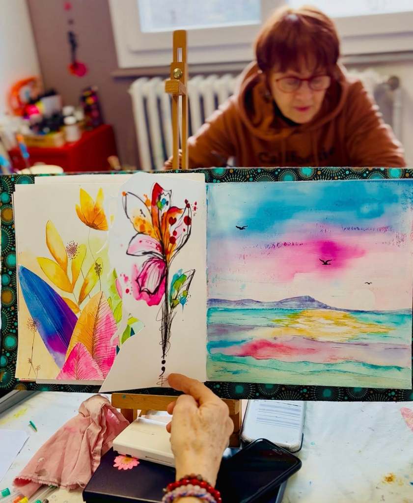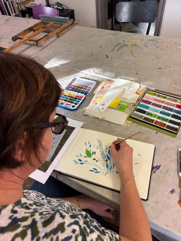 Parmi les pratiques que je transmets à l’atelier, le carnet créatif occupe une place singulière.